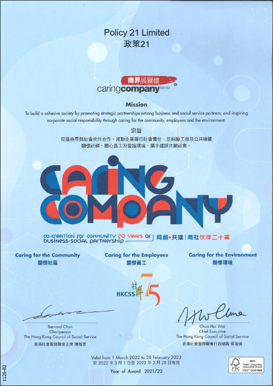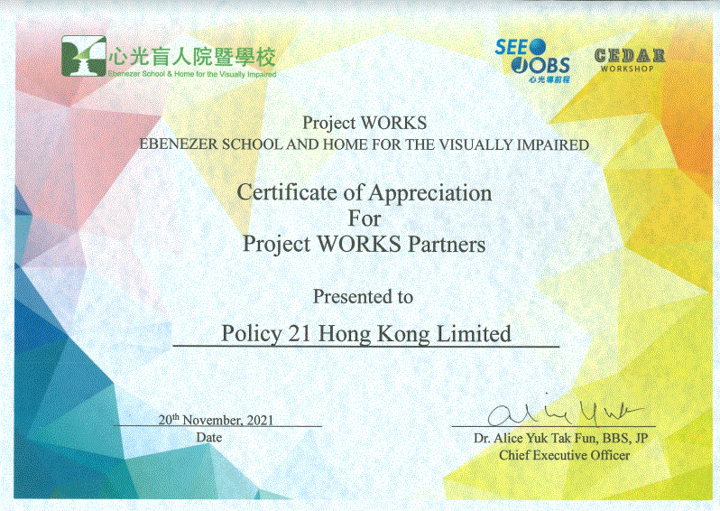 Apart from providing evidence-based research services to the community, Policy 21 has also over the past 20 years provided training and employment services to students, out-of-school youth, housewives and other job seekers looking for part-time work. In 2020, Policy 21 has attempted to employ the ethnic minority, visually impaired and handicapped candidates to work as part time back office enumerators and research interns. Training is provided to these part-time staff on the use of computer/tablets, interviewing skills, data analysis and research techniques. They are deployed to perform a variety of research work, including conducting interviews, data editing, data processing and the preparation of research reports. It is believed that these training and employment opportunities will help enhance inter-personal and intra-personal skills including communication skills and self-confidence, especially for students and out-of-school youth. Over the past 20 years, Policy 21 has provided training and employment services to more than 5,500 job seekers.